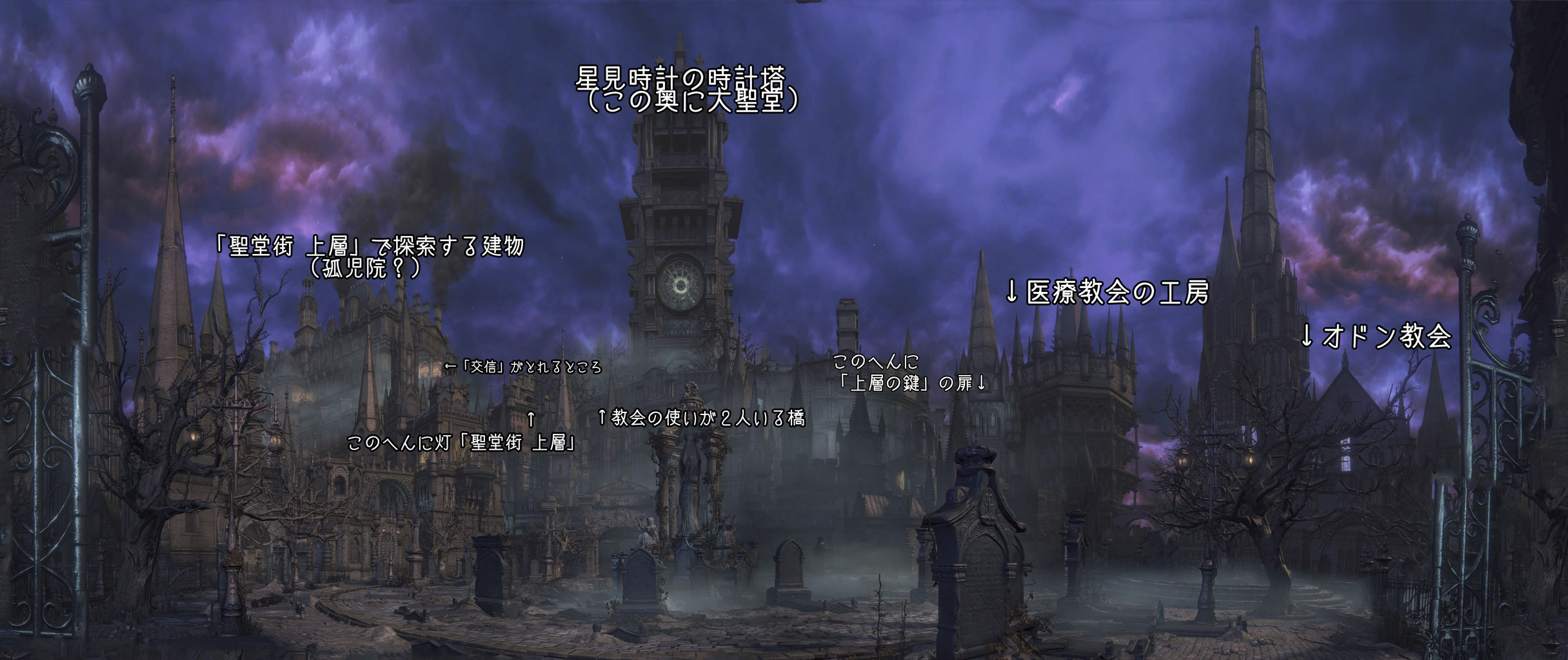 時計塔みたいな目立つ建物あったら絶対ヤーナム市街から見えてるはずだしな
