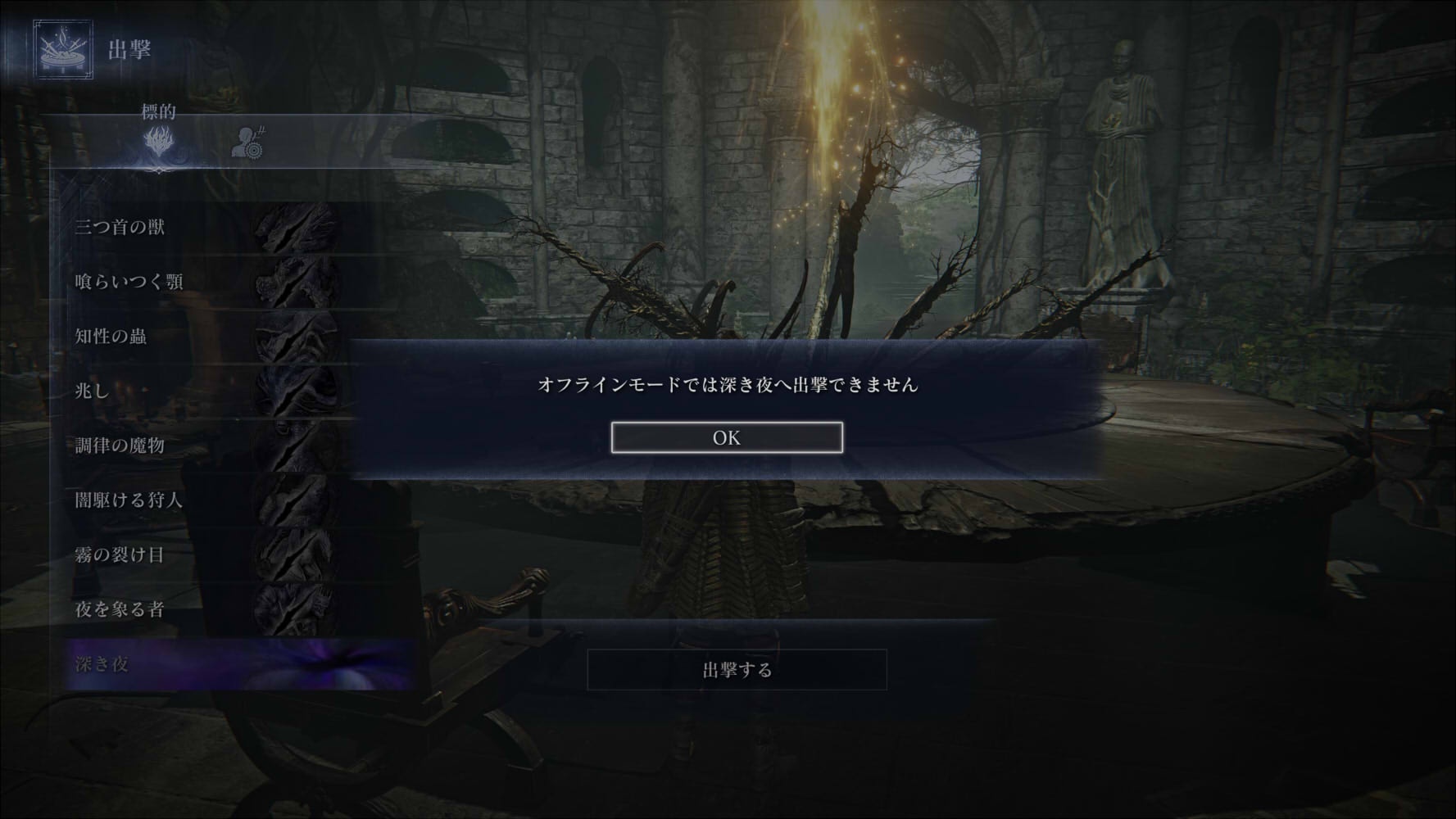 オフラインモードでは深き夜に出撃はできない