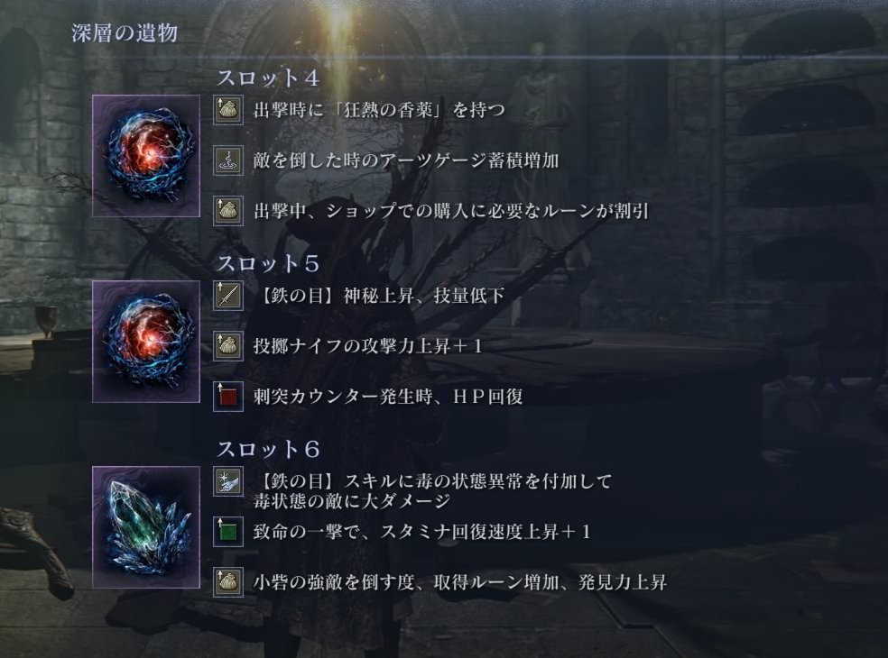 オンストして鉄の目の深夜遺物枠に集めてコレって…有用な構成なん?